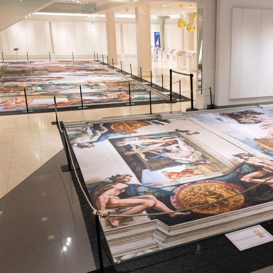 August 7 -  August 30, 2020    -    As part of the Virginia Arts Festival, Michelangelo made its first visit to the United States. The exhibition, with all the hygienic measures necessary for the health of the visitors, was shown in the MacArthur Center, a former shopping center in the heart of Norfolk.  -  Im Rahmen des Virginia Arts Festivals war Michelangelo zum ersten Mal in den USA zu Gast. Die Ausstellung wurde, mit allen Hygienemaßnahmen, die für die Gesundheit der Besucher nötig waren, im MacArthur Center, einem ehemaligen Einkaufszentrum im Herzen von Norfolk gezeigt.